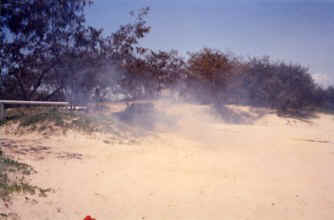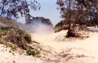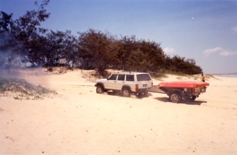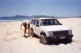 The Jeep popped out fairly easily with the tug from Darren and even started catching up when he hit the soft section full of holes where I had stopped the first time but the slack took up again when I went through the same section. Before we got un-hitched eight more got bogged behind me and they weren't loaded let alone towing and didn't make it as far so I felt a lot better. A big F250 even got bogged trying to drive down to the beach but the police however did make it through which Darren had hoped they wouldn't as he was going to charge them $200 to get them un-stuck.
