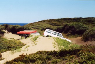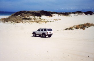 There was this great track we found also at Petal Point that followed all the way along the coast to some nice deserted beaches that were used a bit for fishing. Right at the start at the headland look out for a rusty old metal container 6' or so high on the beach. At the base of this were an amazing collection of shells several feet thick and full of variety. The scenery was great along with the track with large sand drifts to cross at times as well.