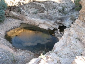 We were really looking forward to going to Big Moro Gorge after all these years. It was a great place back in '95 with a spring fed deep pool about 4 meters deep. You could jump off the surrounding ledges into it and was the perfect place to beat the heat for a few days. Not long after we were there the place was closed to public access but just before leaving on this trip we heard it had been opened again if your bought a permit from the Aborigines who run the property. So we got the required permit from Nepabunna Aboriginal Community along with a map of how to get there from the north through their land. The track was interesting as was not used very much at all and they could not even tell us the last time it was used all the way there. But after quite a few hours of driving down station tracks and washed out river beds we got there fine. They started making a camp site at the northern end of the gorge but there is no shelter there and the ground is rocky and not very level. There were some pit toilets installed though. We camped right at the spring itself nicely in the shade. It is just such a shame that the pool has filled itself with rock and gravel so is only around 40 cm deep and that was after heavy rains a few weeks before. I think this is the normal level though now kept up by the spring.