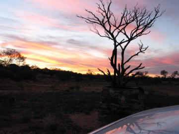 We found this great camping spot only a couple of km behind Roxby Downs mining town nestled in the sand dunes which mines uranium among other things. Looks like they were going to make it into a park at one stage as there was a large stone barbecue there as well. Had the best sunset on the trip there too. You can click on the left image which has the reflection in the bonnet for a larger view.