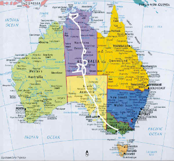 Found a bit of a short cut by following a fence line east until it joined up with the track to Chambers Pillar. This track has a number of sand dunes that have to be crossed with one being quite a lot bigger than the rest. You could see where many had had several goes at trying to get over. Of course we made it first go being in a Jeep! The track improves as soon as you get inside the park at Castle Rock. There is a good camping area at the pillar which is best viewed at sunset and sunrise when the best colors come out. Continued north after here and met back up with the old Ghan track which we followed into Alice Springs. It was very easy to see that the Offroad Race along here once a year is the toughest in Australia.
