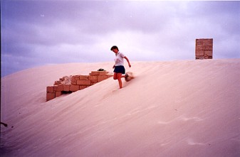 Fighting the wind and dune running.