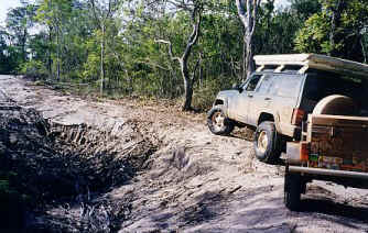 After visiting Fruit Bat falls and the others the track suddenly gets very bad as most people turn back to the easier track. The problem we faced that others don't is that because no one had been over the track since the heavy tropical down pours that happen at this time of year is that water collects on the road and then runs down to the many creeks cutting huge ruts in the track and the swollen creeks cut the banks vertically making crossing them damn hard.