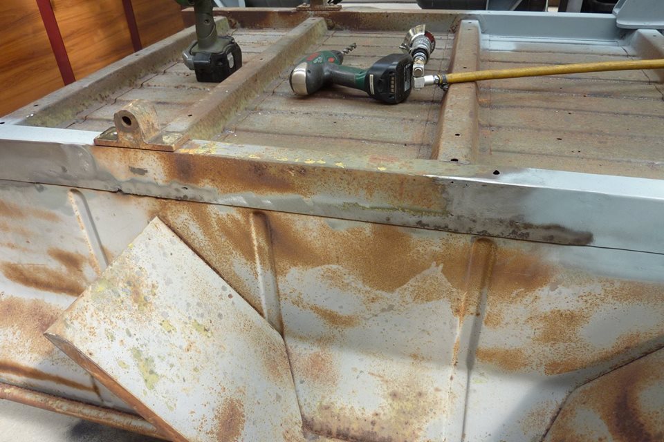Replaced sections that had some pitting. The reinforcement channel for the shackle mount was thicker than the front spring mount, so I made sure I matched the gauge. Probably because there is only two rivets holding it instead of four for the front mount spread over a larger area.