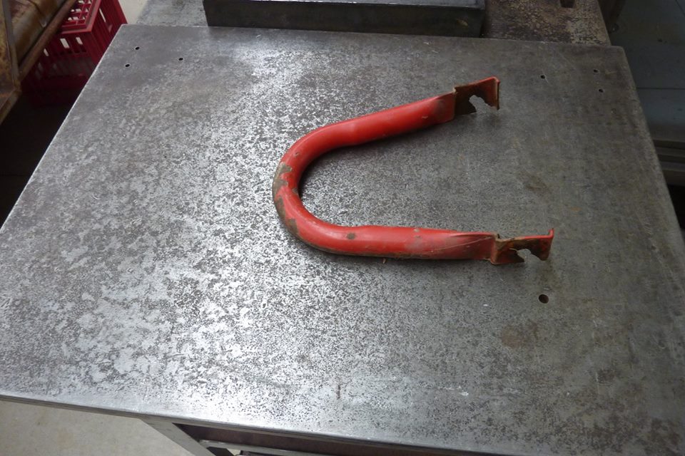 There was a damage section of the rail so cut it out. Made a repair piece from some tubing and shaped it to suit on a T dolly. Welded in.