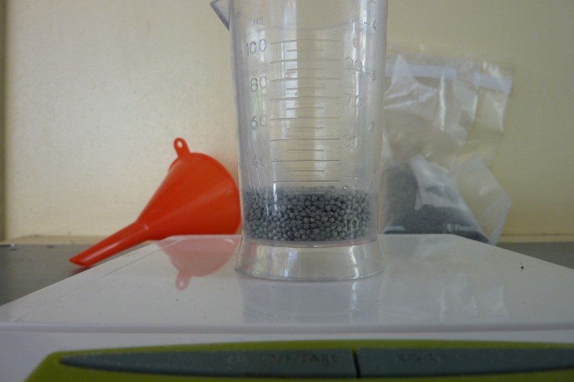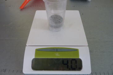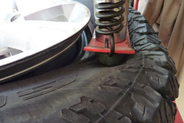 4oz or 115 grams was just over 25 mil in the container I was using. These being bigger than some other beads, need to be added directly into the tyre rather than through the valve stem. I just used my press to pop one corner of the bead to get access after removing the core. But I have also simply jacked up the Jeep and placed my tyre under one of the other wheels still on the car and lowered down. Can see it done when fitting the TPMS on the Interior Ideas page.