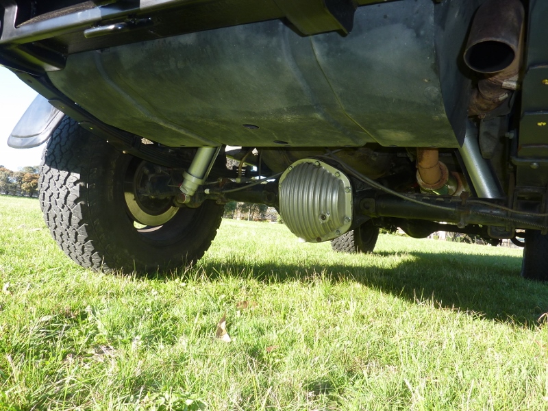 USA made forged alloy diff cover with 4.56 Yukon gears and Detroit Trutrac diff. Over the knuckle tie rod conversion with raises the tie rods to bring back factory angles. Solid tie rod, drag link and adjustable panhard rod. Panhard was also raised to match the height and angle of the drag link to factory specs. Bigger tie rods fitted. Extra steering box cross brace fitted to prevent tearing of the inner frame. Factory recall on frame mount strengthening was also completed before any problems.