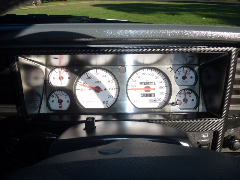Stainless steel overlay on the gauges. Also I made a one off custom white background different to the others I sell. Can see only 207,065 km travelled.