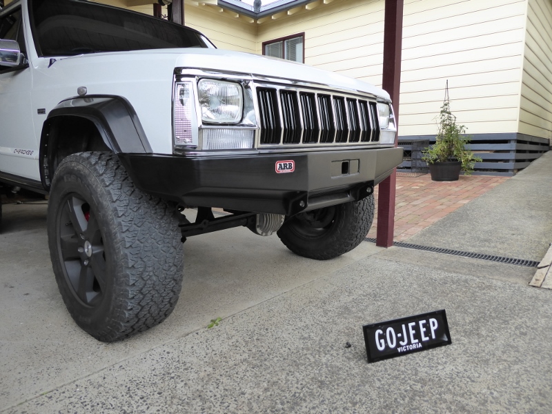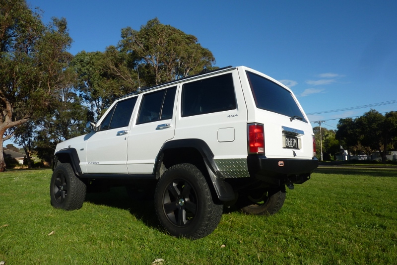 Bigger and stronger than TJ D44, and much stronger than stock D35 rear axle. Was NOS MJ/XJ axle I imported from the US. Fitted with 4.56 Yukon gears, Detroit Locker and CrMo US Alloy axles! Rear lower mounts raised 2" and fitted with RS999194 9 way adjustable Rancho shocks with custom alloy stone shields. Forged USA made diff cover. Fuel tank capacity increased to 90 litres from stock 76.