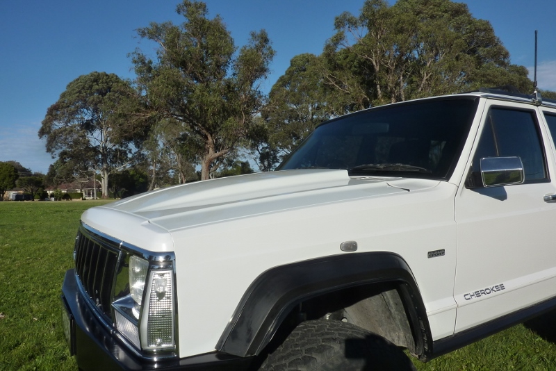 Chrome Laredo/Wagoneer mirrors, door handles and drip rails.