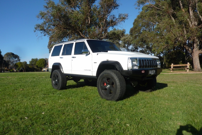 This unique Jeep became known world wide due to this dedicated website on its build showing many of the modifications performed on this vehicle. It has also has appeared in magazines both here and in the USA. Years of research and development has gone into creating it. All well thought out to work in harmony with its intended purpose of touring Australia and being reliable doing so. For example: Taller tyres are matched with the right diff ratio and bigger brakes front and rear so better than factory combination performance. 4” lift has all the steering links raised to keep factory angles along with dropped front suspension frame link brackets to keep the same geometry along with swaybar links extended. Adjustable front panhard bar fitted to centre axle after lift. Rear driveshaft has had a slip yoke eliminator so a longer driveshaft with a double cardan joint can be fitted to reduce the uni joint angles.