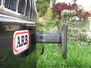 Here it shows the shackle mount in place which you can see how I made it here. The number plate attaches to this plate that was cut out of the front of the bar in the first place. It has a 2" tube welded to it so it held in place by the extended hitch pin.