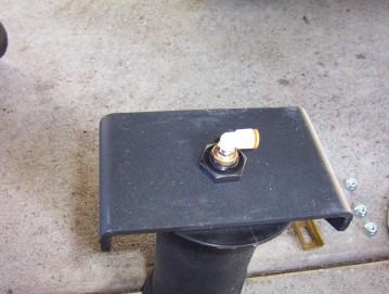 Make sure also that you have at least 5" between the inside of you tyre and the side of the frame where it attaches to give you enough clearance. Otherwise narrower tyres must be used or wheels with less back spacing or offset. Outside of Australia you may also be able to fit wheel spacers legally too as an alternative. The bottom bracket is fitted with a 1/2" bolt and washer loosely so later you can move the base left or right to align it correctly under the top bracket. Easier to fit the top plastic nut holding the airbag in place ( 15 ft-lbs ) and the airline fitting which already has Teflon tape in place. Do this finger tight plus two turns facing it the way you want to run the line.