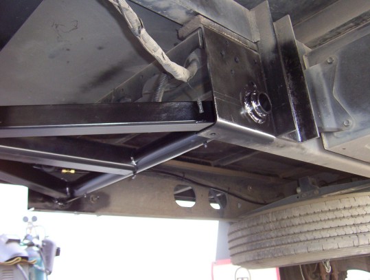 The hitch is pivoted at the back of the chassis and braced with a A frame each side of the receivers centre member which travels the full length from the pivot. The pivot has been fitted with grease nipples for servicing.