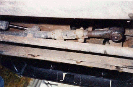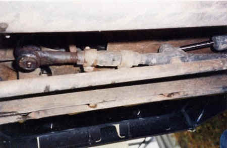 You will have to lengthen the link that runs from your pitman arm that comes out of your steering box. This adjustment will only effect the steering wheel position and not anything else. The Picture on the left is as I see it but for the left hand drives it will look like the right hand picture. You will need the keys in the ignition to release the steering lock. Then loosen the two clamps shown, ( 15 mm on RHD ) and then rotate the sleave that the clamps are on until the steering wheel is back to centre. It helps if someone is sitting in the car but not touching the wheel to let you know if you are going in the right direction and when it is level again. Tighten the clamps back up and then test on the level road again and make any necessary adjustment to get it dead on.