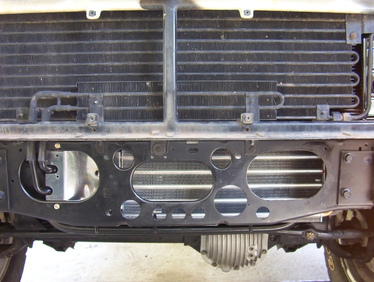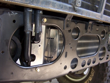 On my RHD I don't have as many openings on the side I had to fit my cooler on to be in front of the Taurus fan. On LHD's, you will have to fit it to the other side where the large hole is already. So what I did is duplicate the large hole over to the other side and then added some smaller holes to increase the air flow. The cross member does not need much strength if you have fitted a stronger bumper as I have. Some even remove this completely if recessing the winch as far back as possible.