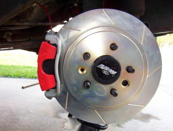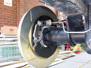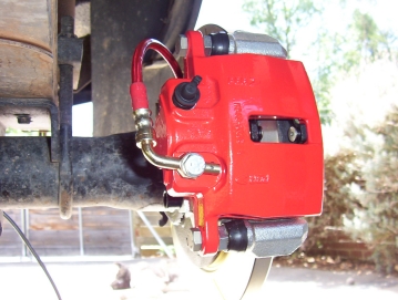 All new iron rotors should also be bedded-in before being used under normal conditions. Proper bedding-in will prepare the rotor surface, prolong the rotor's life and make it more resistant to thermal checking or cracking under severe braking conditions. The best practice is to use old pads while doing this and vice and versa but this is not possible after a brake conversion such as this. This is not cause for concern so break in the pads as told above and then proceed onto the rotors as follows. Make sure that the rotor surfaces are free from oils, grease and brake fluid. Run vehicle up to speed ( 80-100 kph/50-60 mph ) and make several ( 10 - 12 ) medium brake applications ( slow down to 30 kph/20 mph ), do not come to a complete stop, to heat up the rotor slowly. This will help reduce the chance of thermal shock caused by uneven heating of the rotor. Park the car and allow the brakes to cool completely( preferably overnight ). While driving the vehicle to where it will be parked, use the brakes as little as possible. When you need to stop the vehicle, get off the brakes just before the car stops and allow it to roll a foot or two before stopping completely. Do not hold brakes on after performing the bedding-in procedure until cooling is completed. This will avoid “hot spotting” or uneven cooling which can damage the rotor. Braking will continue to improve for the first 200-300 km/miles. Remember though that highway distance does not count in breaking in the rotors and pads and improvement you get but heavy city stop/start does.
