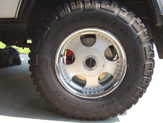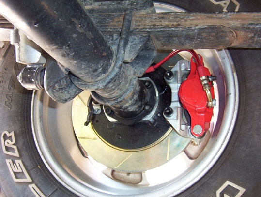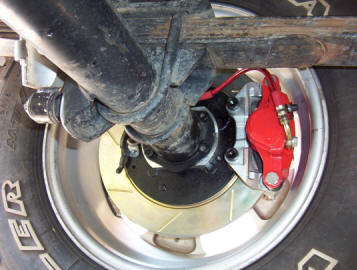 The end result will look like this and no more loss of rear brakes after each water crossing or brakes that go out of adjustment all the time. For D35 owners there is also now the added safety that the axle will not depart the whole car should a C clip fail or axle break as happened here. The right photo shows Jeepdownunder's D35 I fitted a kit to with Rubicon wheels and 265/70/16 tyres. He was also amazed to have such a good working handbrake for the first time ever in a Cherokee let alone the better braking.