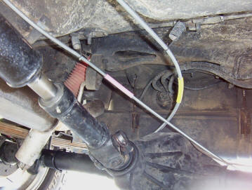 You can see the curve is much more relaxed when run to the opposite side on the 84-97 XJ's and maybe better for the 96-07 TJ's as well. I used just the short support spring to hold the cables up as shown into the original holes which are part of the seat bolt reinforcement.
