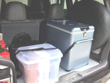 I wanted a dual battery setup to run my new 40 litre ARB fridge that I had just bought. The only thing was that I did not want to crowd my under hood area anymore as it restricts airflow ( less air will then be drawn through your radiator ) and it gets in the way to access things around it. Also a battery of this size weighs 22 kgs ( 48 lbs ) which is something I don't want to lug around the rest of the year when I don't need it. I looked into ready made ones like the Waeco range but they are very expensive and still don't have the reserve capacity or amp hours that I was after. Also they re-charge very slowly and you have to throw away the whole thing each time it needs replacing. So what I did is outlined below.