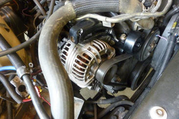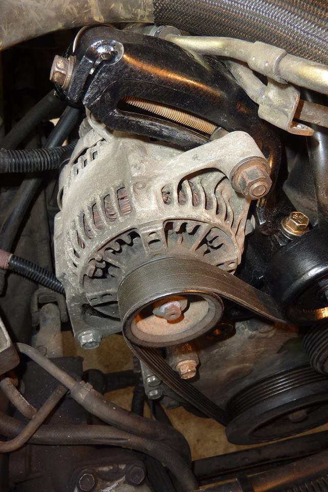 LHD's did not have this setup and you cannot buy a replacement tensioner anymore, so I swapped everything over to one year later 96 model. Later years and ZJ and ZG 4.0 models might also work. It is a big cast iron bracket instead of the light cast alloy one. Many thanks to Jason for gifting the bracket and bolts to me. :) Make sure you get all the bolts, pulleys and belt tensioner screw and bolt arrangement. Bolts are different lengths and even thread in places. The 96 model and many later ones have the alternator up higher which I prefer away from the muddy water.