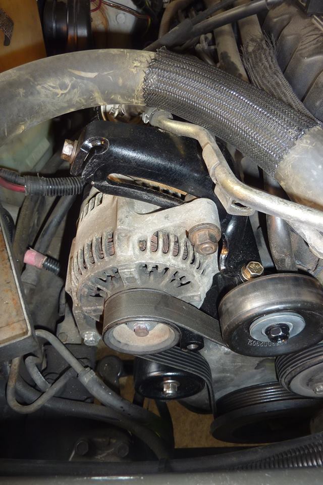 Alternatives are using the old idler pulley mounted on top of that timing bolt boss to deflect the belt away from it. Just need a longer one to hold the pulley in place. If you want more belt wrap around the crank and alternator, run a smooth pulley instead like this. I swapped the old 95 pulley where the 96 one was and ran the 96 on the timing bolt boss. You do need to cut off the old lower boss from the bracket though as you can see it hit it in this photo.
