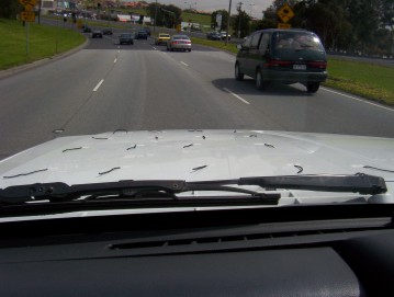 I did some aero tests to see what would be the best place to put them. By sticking strips of wool on the bonnet and then going for a drive I found that the first half of the bonnet has a negative pressure area as I had surmised. If you look closely you will see the wool at the front being pulled forward and even straight up. But as the speed increased to around 40 - 50 mph, the wool was pulled around and kept flat like the rest of the bonnet indicating that the air stream was being forced flat at the higher speed. You can really get bogged down when you start to take into account things like Laminar flow, Random turbulent flow, Bernoulli's equation and Reynolds numbers etc. Basically having them in the front 1/3 will make it better at speed ( why Rally cars have them there ), and putting them in the rear 1/3 is better suited to slow 4wd speeds.