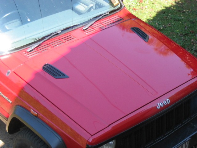Above is Tozovr's XJ who has fitted Pontiac Grand Prix vents. These are far cheaper than the ZJ ones. They work better without their drip pans but it is one way to have control over where the water goes that comes through the vents. From tests I have seen you can expect between 15 to 25*F lowering of under hood temperature depending on speed at the time.