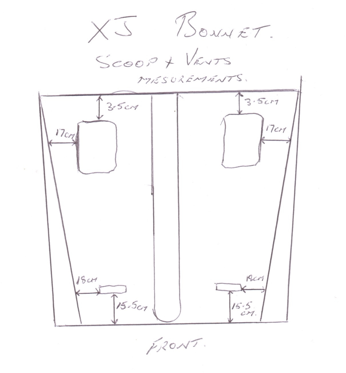 Here is Jeepzz's with original ZJ ones fitted to his hood and also some vents on the next one that came off a Nissan 260Z coupe. These have been added more towards the rear which is the safest position due to the points already mentioned. You can see a full install of adding these vents here.