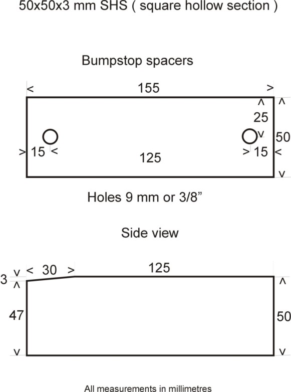 You will need 350 mm of 50x50x3 SHS ( square hollow section ) to insert between the bumpstop and the frame, plus four 5/16"x1" long UNC grade 8 bolts with nuts and washers.