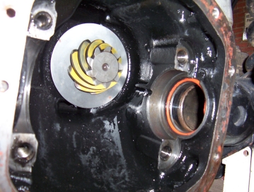 This photo shows the seal removed. The orange ring is not part of the seal so leave in place. To install the new seal I used a 1-7/16" socket, by the look of the photo, that fitted inside the seal nicely.