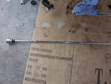 You will need a fair amount of extensions so you might have to borrow some? I had some long ones already to make changing the CPS and removing the top bellhousing bolts easier. The next photo shows the seal with the socket and extension in place about to drive the seal in. You slide the extensions in first and then attach the socket and seal to the end of it afterward. Make sure you have the extensions centered in the axle housing, not like shown where it is just laying in the axle tube so I could take the shot, to to keep the seal square when driving it in.