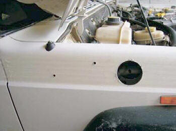 This install came about after spending a day at the Airflow factory working on the petrol Cherokee snorkel so you would no longer need to move the washer bottle from inside the guard to the engine bay after fitting a snorkel. Once I had worked that out with them I asked if we could try some of their other snorkels to see if there was one that could be used on the right hand side of the Jeep as well for all the diesel Cherokee owners. Using my Jeep we then went through them until we found one that would do the job nicely. So then set about making a guard template for it and working out how best it could be run to the airbox. As I didn't have a diesel I put the call out to diesel owners on the Ausjeep forum and Roger ( Kyro ) and Ian ( Mountainman ) came to the party with photos and ideas and together with Airflow we came up with a workable solution. Then it had to be tried out and Roger was game enough to be the guinea pig. So here is his story on how it all went. ( Gojeep )