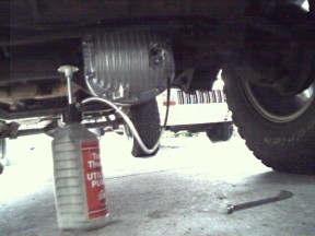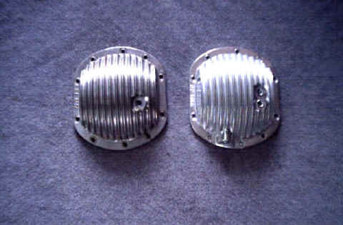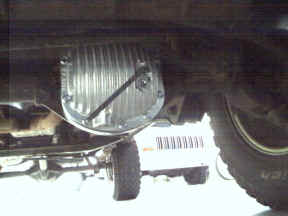 The standard capacity for the front is 1.5 litres and the rear only 1.2 litres of oil. Just do the diff plug back up and you are done. I have also added a rear diff cover on my Dana 35 that increases the capacity by one and a half times to give cooler running through the greater amount of oil and also the alloy dissipates the heat better. These covers are made by the same people that supply the Atlas transfer cases which are considered the best by many in the rock crawling world. The covers are dropped forged making them very strong and much stronger than the cheap cast ones you see in magazines. You can contact the manufacturer direct toll free on 800-MR-CONCEPT or at http://mrconcept.com/ . The front is part number C.P. 5058 for the Dana 30 and the rear for a Dana 35 is C.P. 5062. For a front or rear Dana 44 you can use either a C.P. 5055 ( unless it is for a front diff on a Chev ) which looks more like my front one or a C.P. 6057 which looks more like the rear. Also now made is one for the 8.25 Chrysler rear axle which is C.P. 4073. I also ordered them stain finish which is cheaper than polished but what I prefer instead of natural cast. More information about the cooler running on my exterior ideas page.