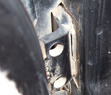 You see above the typical pulling away so long as you get it early enough. They get far worse than this with some pulling away altogether which makes the repairing very much harder. The area showing the the crack vertically is only putty which you just dig out with a screw driver. It is hard to see the crack in the weld at the top there but the best way to clear that is using a die grinder like shown.
