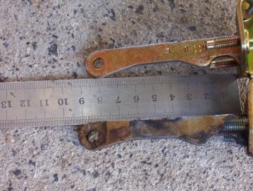 Jeeps answer to stop this happening on 97 and later models was to have a check strap with a built in bumpstop. You can see the difference with the new one above the old. The strap measures 5 mm shorter than before but I noticed in testing that the door will still open as wide as before due to the rubber block compressing. So only the force is reduced if you let the door swing out hard so try to minimize that from happening.