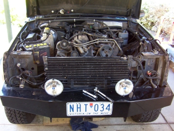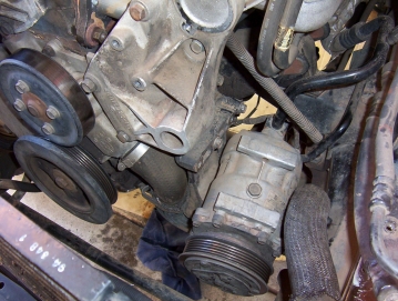 Start by removing the radiator like shown on my site. Once that is removed along with the fans, also unbolt the header panel. This will give you a lot more room to work with and is only held in by 4 nuts and one self tapper in the middle on the cross member. I even leave the headlights in place on the header panel and just unplug the loom. The A/C condenser is left in place in the photo but was just lifted up and placed on the left hand guard still connected so no gas is lost. Remove the airbox along with vacuum lines that don't stay on the engine.