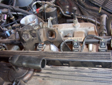 The plastic cover over the injection harness is clipped off and the harness lifted out. Earth wires from the engine are removed. They are located on the engine coil studs as well as the oil filler mount. One also from the last head stud to the firewall. The alternator was removed and sat on the bumper still connected. If you do remove it completely, you will have to mark the wire that is very similar to other earth wires from the same harness. Start underneath by just disconnecting the exhaust header at the flange. Leave both the intake and header in place on the engine for the pull.