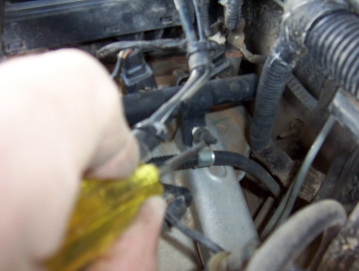 Some tell you to remove the fuel rail to get to the bolts but this is not the case at all. You can see here that using an extension with a universal at the end allowed me to get to most of the bolts. Was able to do some of the bottom row as well from above running the extension and universal underneath the intake. You will have more room if the airbox is removed. The left picture also has a screw driver pointed at a clamp holding the loom from the CPS to the fuel rail which must be removed. I have been able to get all but the last near the firewall this way which was undone from underneath using a ratchet ring spanner which makes the job much easier. There are three bolts that only hold the header in place which are the first middle and last bolts. You can see these a few pictures down holding on the new header. Leave though until you lift the intake out of the way. Also try to keep all the fuel lines connected by putting the intake across the top of the rocker cover as they are prone to leaking otherwise. If you want to remove them, push the hose in hard and then press in the tabs with some long nose plies, then pull the hose free.