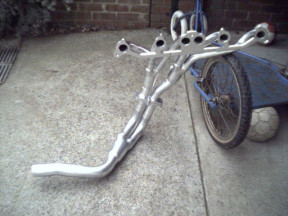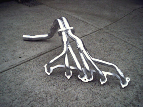 These above are the stock headers and even though they have the right tube diameter, they are far too short and are of poor design in the flow area as well! These have a habit of cracking and cars that do a lot of short trips will crack sooner as it has a lot to do with how often they are heated and cooled. As I use a bike for all the short trips I can and the car gets to do more than half it's total mileage every year touring around Australia even these had just started to show signs of cracking at 110,000 kms on the clock.