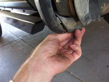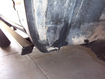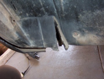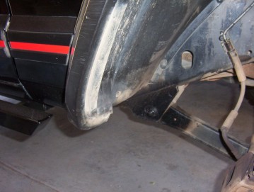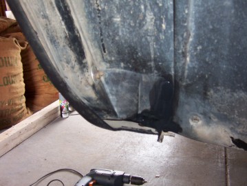 That part can now be pushed back and the tab left bent down arrowed earlier, is now bent up in front of it to hold it in place. I then sealed the area up with some black urethane. You will need to re-drill the bottom self taper hole so you can push the flare back as far as it can go. If you disconnect you may need some trimming at the front of the flare as well shown on the next page.