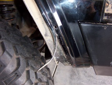 If running bigger than 31's you will most likely have to trim the front of the wheel arch as well. It also depends if you have longer lower arms or packed your arms forwards when setting the caster. It is the same as the back arch where you trim the fold off like shown above and then push the inner guard forward when bolting it back up.