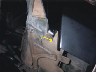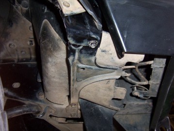 One this one with 32's I has to move the lower guard support forward as well to give enough clearance. If you look at the first photo above you can see where the edge of that bracket is stock. I then moved it forward right to the edge of the guard as indicated by the yellow arrow and used that bolt to hold it in place after drilling a new hole in the bracket for it. You need to take out the back two bolts and slot the bracket holes with the closest one to the outside of the guard backwards and the other forward to allow the bracket to come forward. If you still have the front apron in place this may not be possible?