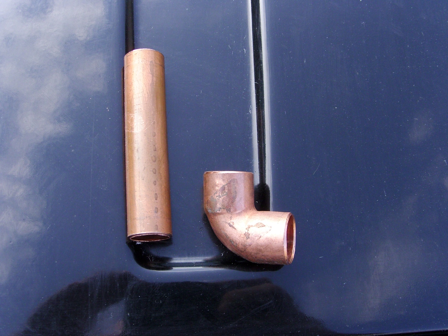 2) Solder tube to elbow. Cut tube to length per Go_Jeep web site.