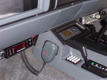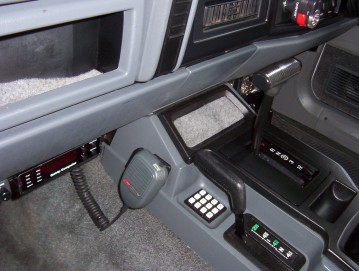 I also cut a matching piece of trimming that my subwoofer and other things are covered in. This sits neatly on top of the GPS when left in the car and removes some temptation for breaking in. The piece also sits in the bottom of the bin covering the holes for the leads when the GPS in not in place as well. So I have quite a communications centre going on with first a in/out digital thermometer, then a UHF GME TX4300 CB, followed by my trip computer. The GPS is next before my AM 40 channel Uniden PC122 CB then a brake controller and sub woofer amplifier. Yet with all that it still manages to look un-cluttered.