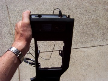 The photo shows a close up of it's flush position in the console bin. You can follow how to get the console out here. The two holes made at the back of the bin are for the power and the remote aerial lead.