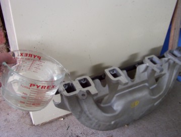 The best way I thought of to show just how much bigger the new intake is was to block off the throttle body by cutting a canvas gasket to mount underneath the throttle body before bolting it down and to block off all the vacuum ports. I then used a measuring jug to fill the intake with water until it reached the top of all the ports. The old one took 2.6 litres or 2600 cc's to fill and the new one an amazing 4.3 litres or 4300 cc's. To think that a throttle body spacer only adds .076 litres or 76 cc's you can see how much bigger in volume this is without the sharp bends in the runners to boot!