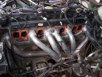 First thing is to pull the airbox out of the way to give you more room to work in. Then strip everything from the intake remembering where the hoses come from. To remove the fuel rail you remove the fuel tank hoses by depressing the white nylon clips each side and sliding it back. Then remove the four bolts holding the rail down and wiggle the rail upwards at each end and along the rail pulling back hard until it pulls free. If you are not changing the injectors this way saves you from worry about leaks from the upper O rings. You can clean up the bottom ones by removing them and soaking them in Diesel for a while and giving them a good rub if they are still in good nick. Otherwise you will have to buy a complete kit to replace upper and lower ones. There are four upper bolts to remove as well and another four underneath. I was able to get the first two underneath at the front of the motor from above but the last two had to be done lying on the ground and used a ratchet ring spanner. I left the extractors in place ( held on by the very first, middle and last bolts ) as they had only been on a year and the gasket was un-damaged when the intake was removed. The RTV Copper silicon just rubbed off with my fingers.