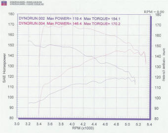 But now years later I have a dyno chart showing a before an after. DJJordache posted a write up here showing that swapping to this along with the Hesco fuel pressure regulator and 99 injectors, as I have also done also, showed 26.9 hp and 19.7 rear wheel torque at the rear wheels comparing on the same dyno before and after the swap. Click on the chart above to see a larger view. Now that is at the rear wheels and we all know of the parasitic loss of the drivetrain with a XJ running at a reported 22% and the ZJ used for the dyno even worse with as high as 30% being mentioned with the auto. So that is quite some gain but can only be achieved with a good set of extractors, exhaust and intake filter flow as was used here. It must be noted that some of this gain would have come just from the injectors especially if the old ones were old and dirty. Also I have seen more dyno charts since and 96+ Jeeps with OBDII systems do not respond as well and have suffered up to 3 mpg fuel loss so would not be worth it unless you have plenty of other modifications as mention before. Also those that have not used the later injectors along with the required higher fuel pressure to run them, did not get as good a results. Basically if you have a 96+ Jeep with few flow modifications, it is not a worth while swap.