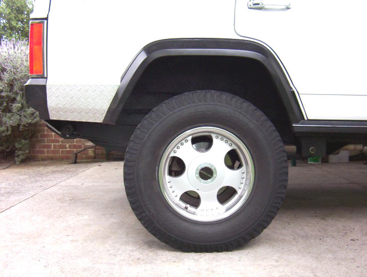 Now they only use the 4 mounting bolts that the old tank guard used with this brand of tank but that does leave the front and heaviest part of the tank un-supported. Was not happy about that so dropped the tank again and installed the old tank straps as well. I made up an extension for them as shown out of some 3 mm strap steel and now the tank sits very firmly up against the floor. The LRA tank for the Cherokee only uses the 2 straps and no bolts at all along the side. Think I have the best of both now. With my 4.5" lift you can see it is not noticeable at all from behind or the side in the picture below.